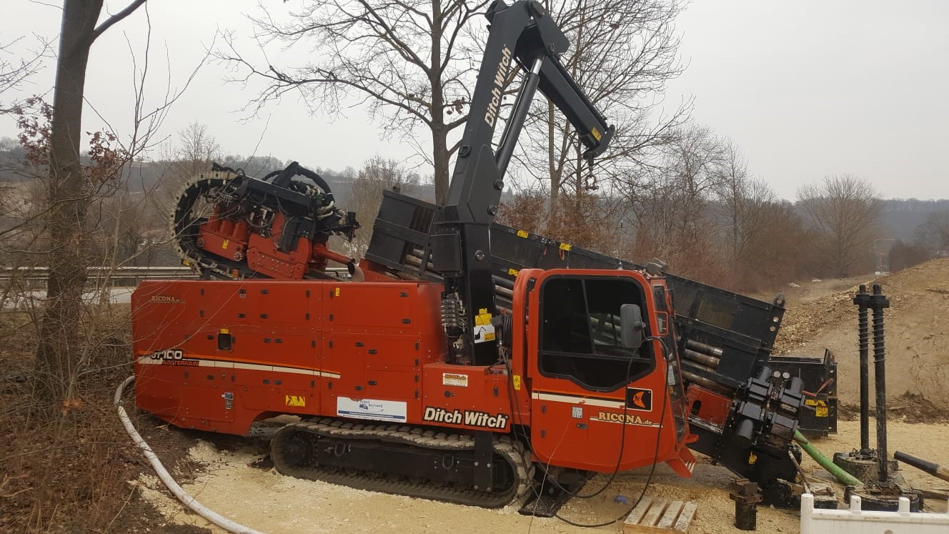 zu jedem Horizontalspülbohrgerät gehört ein Drei-Achser inkl. Mischanlage, ein Tieflader und ein Transporter